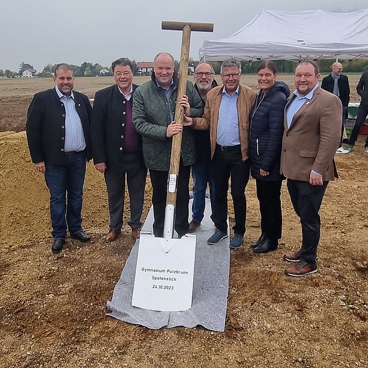 Spatenstich für das Gymnasium Putzbrunn am 24.10.2023. Jetzt geht es offiziell los mit dem Bau. Die Fertigstellung ist für den Beginn des Schuljahres 2026/2027 in knapp 3 Jahren geplant.