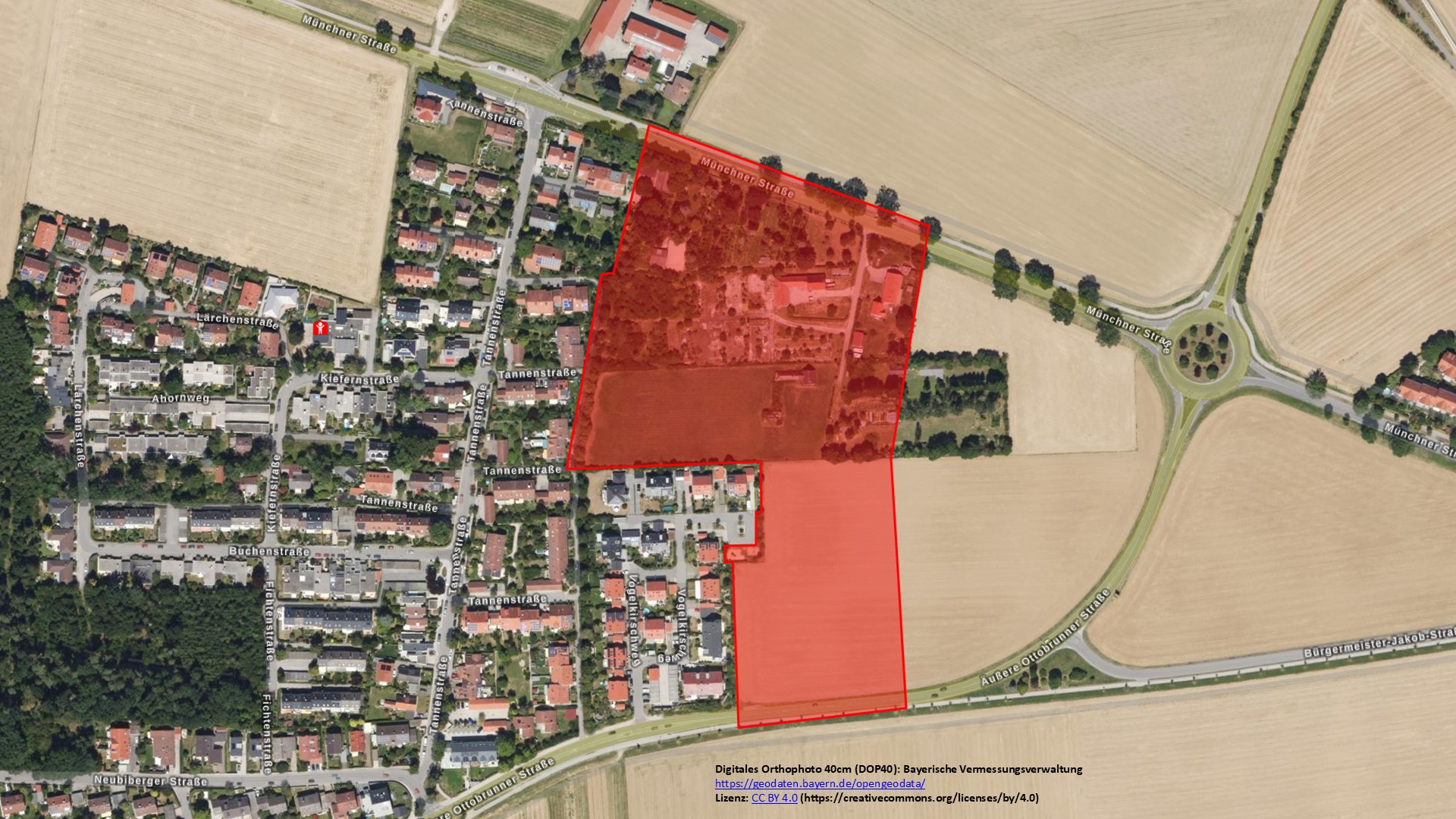 Ein Grundstückseigentümer im Bereich zwischen Münchner Straße und Äußerer Ottobrunner Straße hat eine Bebauung seines Grundstücks beantragt. Da die Flächen im Außenbereich liegen, ist dafür die Aufstellung eines Bebauungsplans erforderlich. Nach Ansicht der Verwaltung sollte gleich für das gesamte Gebiet ein umfassendes Konzept für die Bebauung entwickelt werden, um eine einheitliche städtebauliche Entwicklung zu gewährleisten und folgende Ziele zu verfolgen: