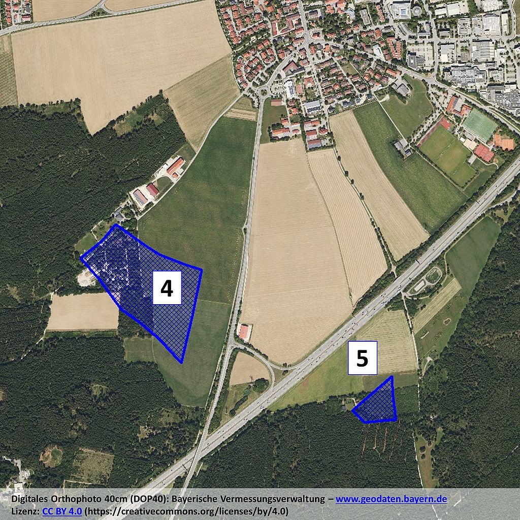 Die Potentialflächen Nr. 4 (ca. 8 Hektar) und Nr. 5 (ca. 1,1 Hektar) wurde jeweils mit 16:4 Stimmen angenommen. Uns haben diese Flächen nicht überzeugt. Wie allen anderen Flächen sind auch diese Flächen mindestens 600 Meter von unseren Siedlungsgebieten entfernt. Da bei uns allerdings eine westliche bis südwestliche Hauptwindrichtung vorherrscht, ist bei diesen Gebieten mit einer höheren Lärmbelastung für unsere Bevölkerung gegenüber nördlich oder östlich gelegenen Standorten zu rechnen. Das Gebiet Nr. 5 ist zwar als einziges Planungsgebiet in Gemeindebesitz, allerdings befindet sich dort eine Ausgleichsfläche und die Fläche schrumpft zudem auf 0,6 Hektar, wenn man bei der Siedlung am Grasbrunner Weg wie vorgegeben 600 m vom Siedlungsrand misst.